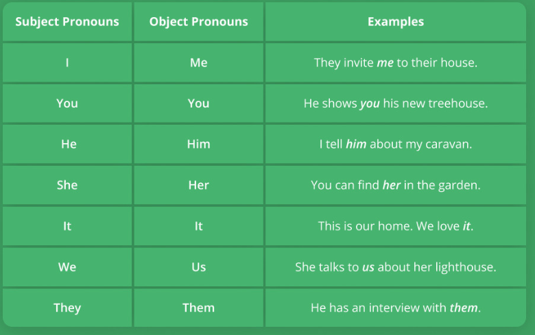 Change the words in bold into subject or object pronouns.