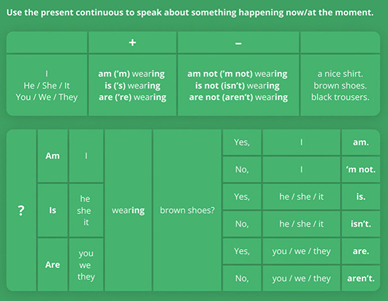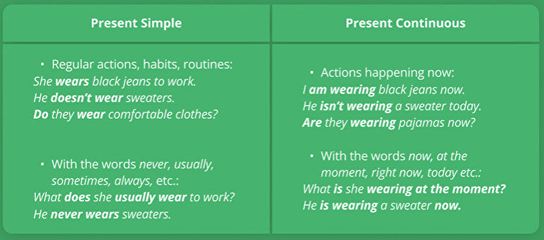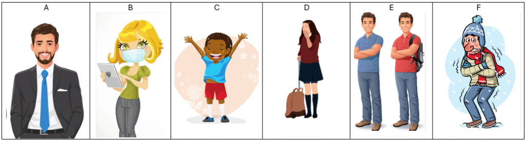 8. She / He’s wearing shirt / blouse / jeans / trousers.
