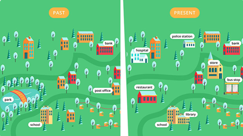 E.g. There was a park in this town and people could go for a walk. Now there’s no park and people can’t relax there.
