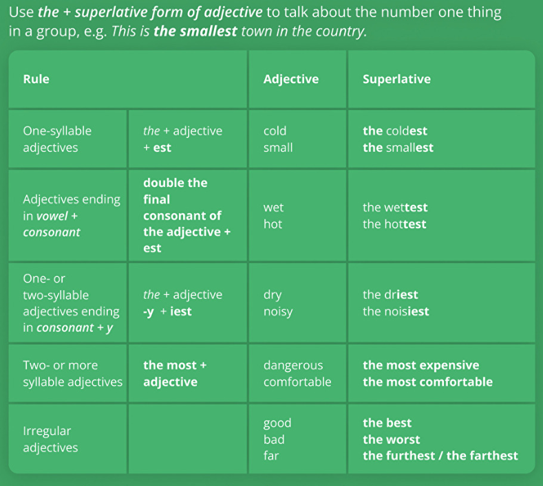 Finish the lines with the superlative forms of adjectives: