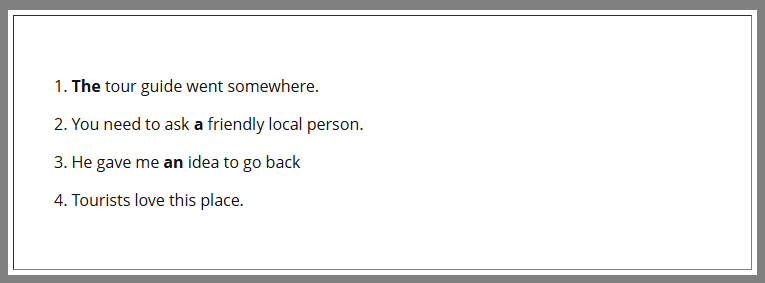 Practice using the correct form of an ARTICLE