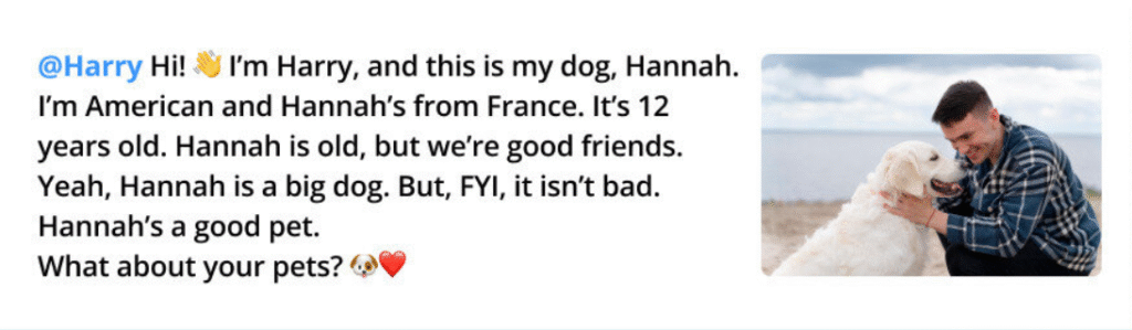 @henry_pet: Hi! I’m Henry, and I have a cat. Its name is Holly. It is a good cat from Asia. Holly is young. It’s 1 year old.