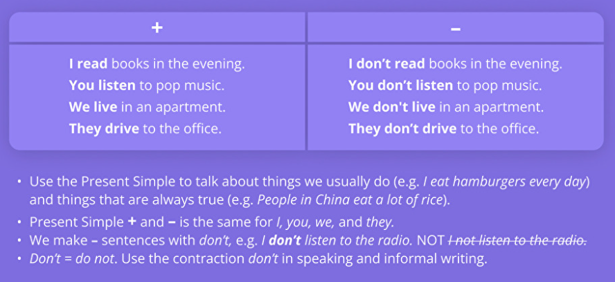 Example: I live in an apartment. I don’t have a sister and a brother.