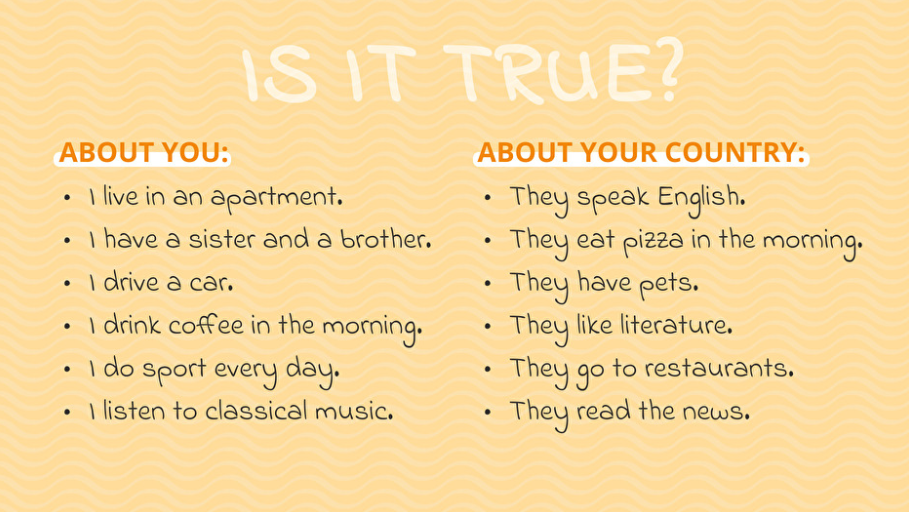 Read the sentences. Say if they are true about you / your country.