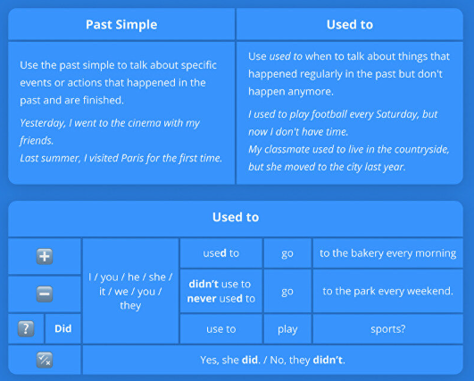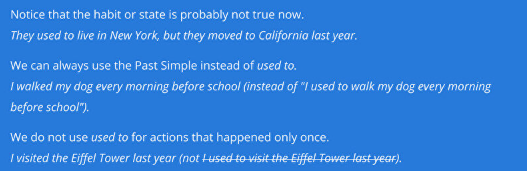 Rephrase the sentence using USED TO and say if these statements are true for you or not