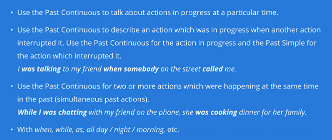 Now make “When did you last…?” questions for each sentence above. Take turns, ask and answer the questions.