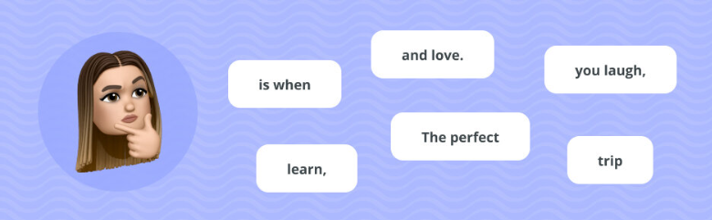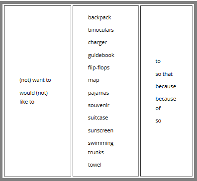 Make 6 sentences about yourself. Each sentence should have 1 word / phrase from each column.
