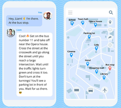 Mia got lost in Tahiti. Read her dialog with a stranger and complete the gaps with the words from the list