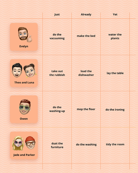 Look at the table and make sentences in Present Perfect