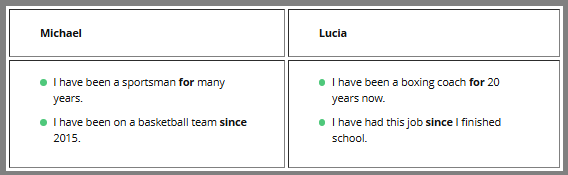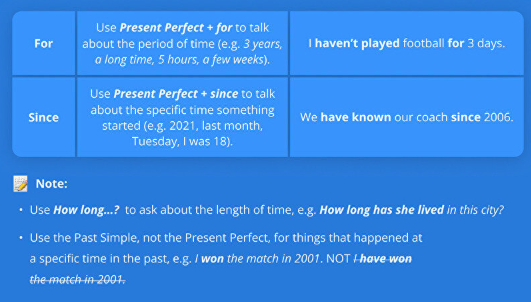 Present Perfect + for /since